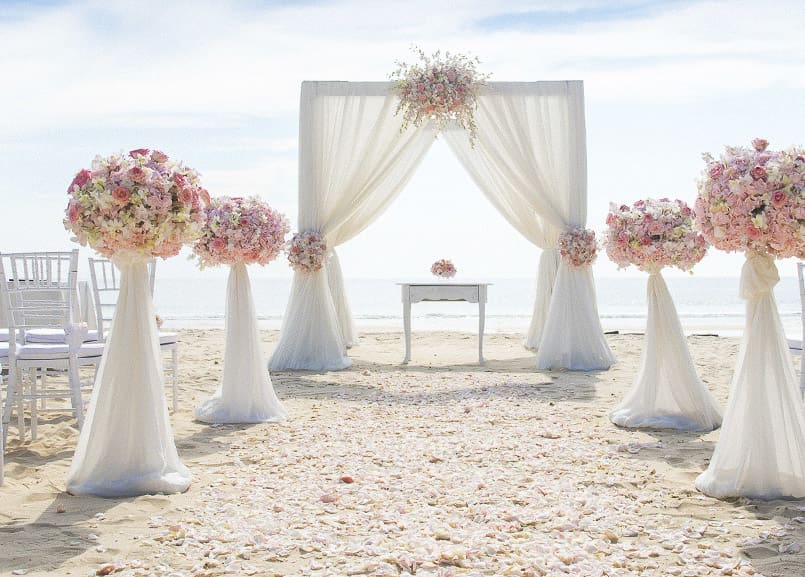 Beach Wedding Venue Setup With Roses And White Flower On The