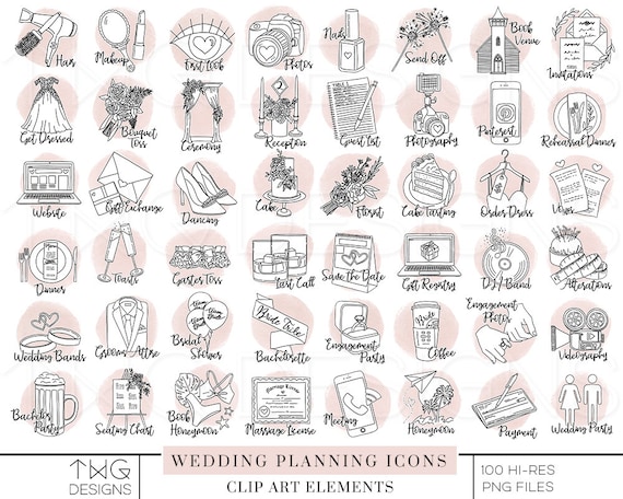 Wedding Planner Icons Clip Art Clipart Watercolor Hand Drawn Etsy